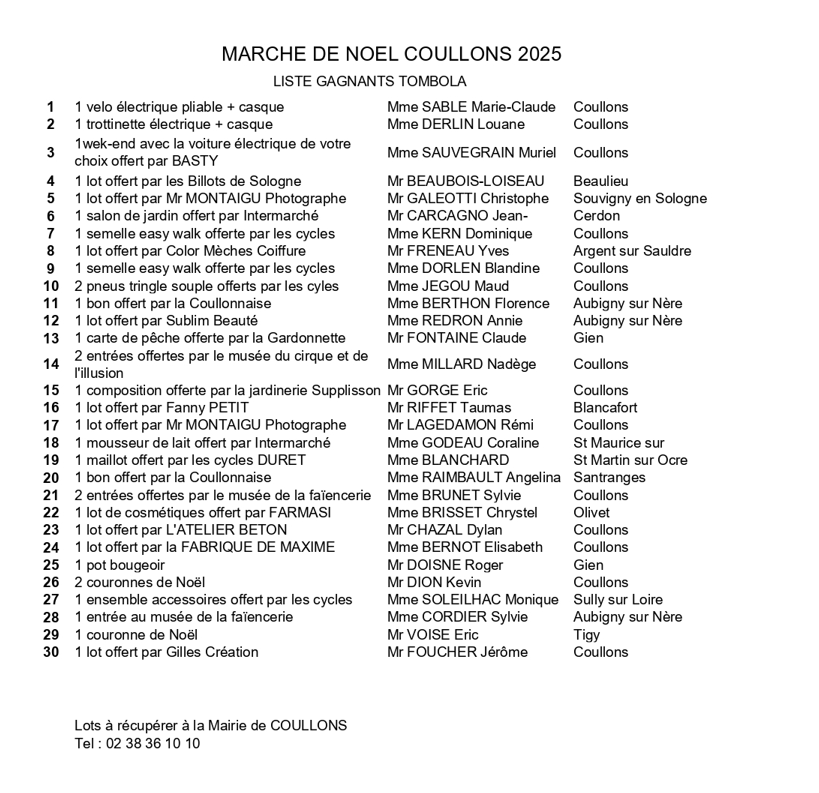 Adresse postale :Mairie de Coullons, AMNC,6 rue de la Mairie45720 Coullons